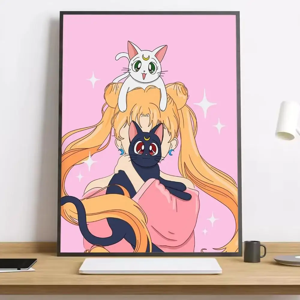 Sailor Moon & Luna Cute Cartoon Wall Art